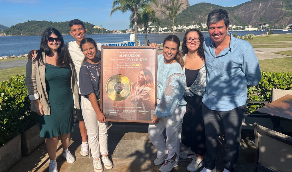 Aline Barros recebe quadro comemorativo por mais de 260 milhões de reproduções no álbum "Minha Oração" e certificações de sucessos do projeto