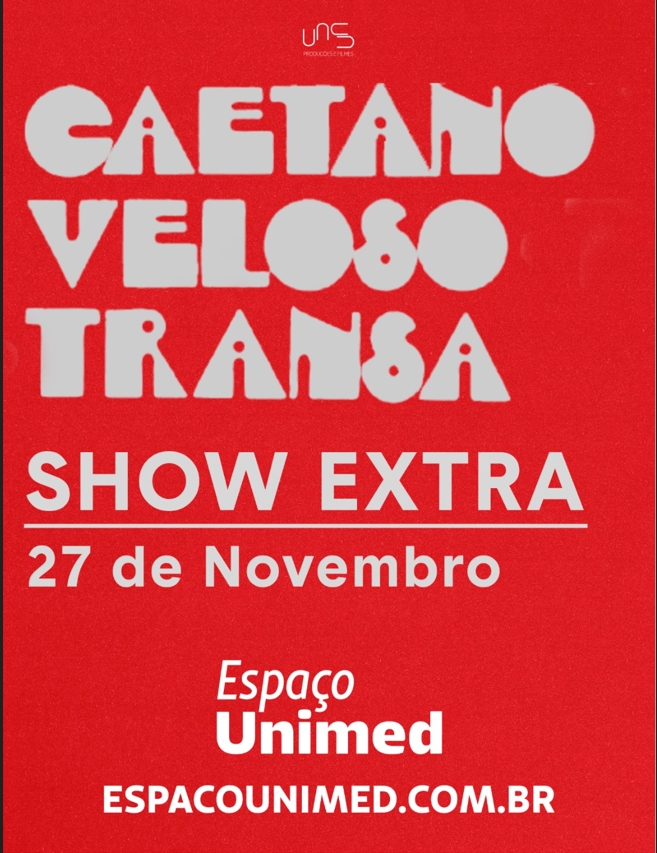 O Espaço Unimed, uma das principais casas de shows do Brasil, traz à São Paulo duas datas do show especial de Caetano Veloso que celebra os 50 anos do album “Transa”. O baiano se apresentará na terra da garoa nos dias 25 e 27 de novembro de 2023 (sábado e segunda), com ingressos disponíveis apenas para a última data (27/11/2023).