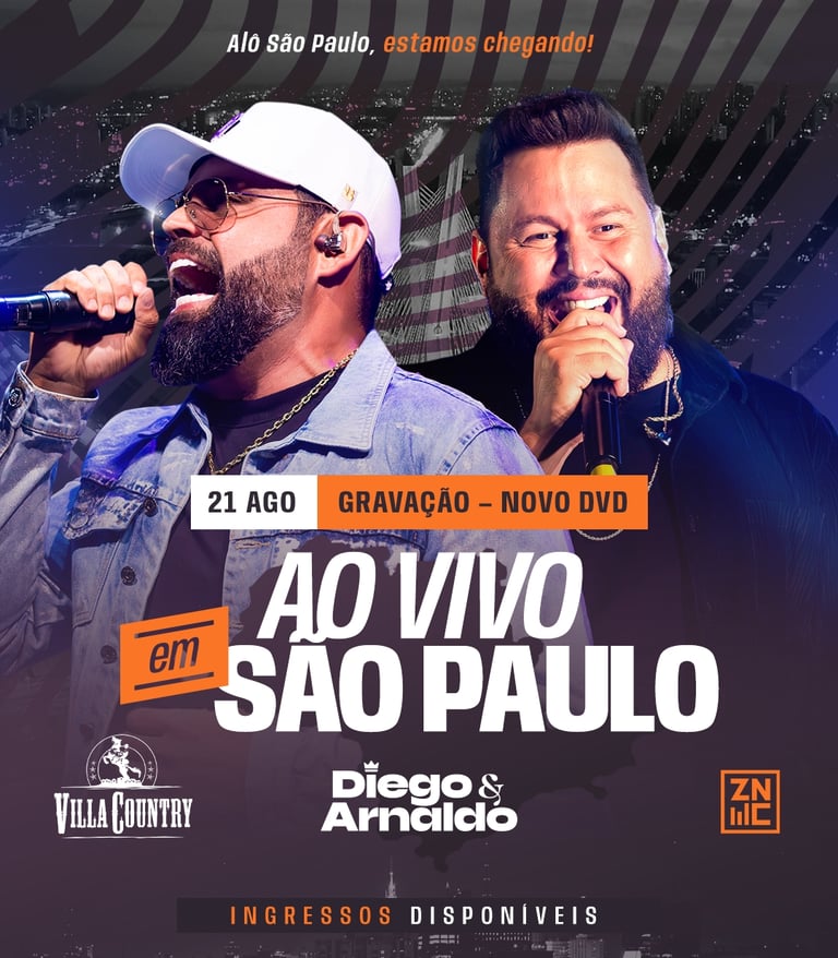 Diego & Arnaldo vêm se estabelecendo como um dos grandes nomes da música sertaneja contemporânea, são 10 anos de estrada desde que saíram de Ribeirão Preto, durante esse tempo foram sete álbuns audiovisuais gravados, e agora, Diego & Arnaldo se preparam para a gravação do 8º DVD e o primeiro sob os cuidados dos empresários Zé Neto & Cristiano, que também são uma das participações confirmadas na noite do dia 21 de Agosto em São Paulo, além de Lauana Prado, Luan Pereira e mais grandes nomes que serão anunciados em breve.