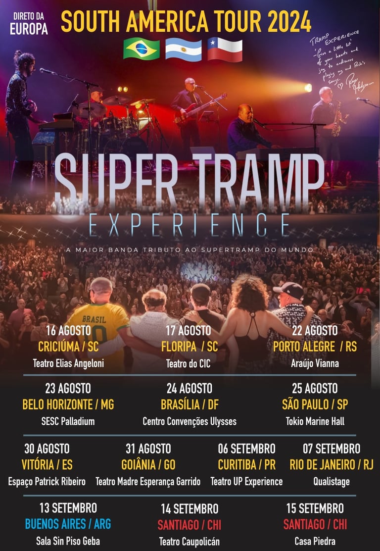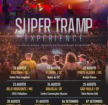 Considerada a melhor banda de tributo ao Supertramp e a única reconhecida por Roger Hodgson, co-fundador do grupo original, o SUPERTRAMP Experience traz ao Brasil uma série de shows que prometem uma experiência única e imperdível.