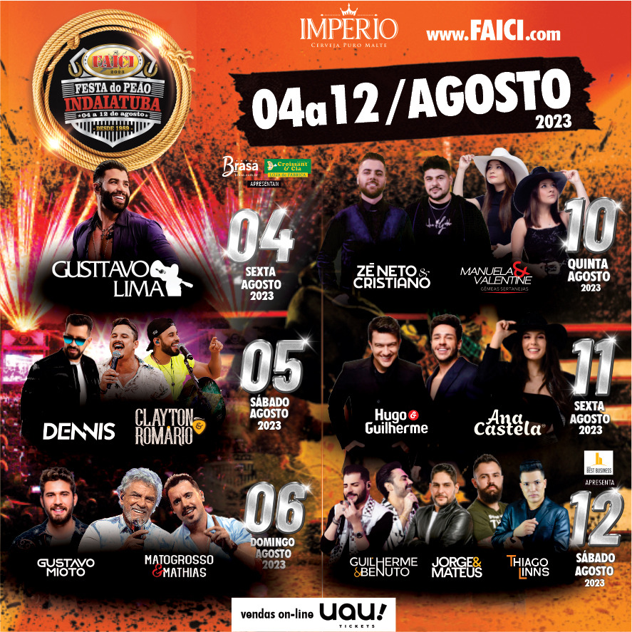 A FAICI, que é considerada uma das maiores festas do interior paulista e integra o calendário oficial da cidade, acontece em um amplo espaço com diversas atrações, além das empolgantes competições do rodeio e um time de artistas que animará todas as noites.