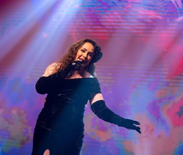 Fã incondicional de Gal Costa, Gina Garcia escolheu um repertório afiado, com os principais sucessos do ícone da música que nos deixou em novembro de 2022. A cantora surgiu no palco com um vestido preto e abriu o show com Força Estranha, arrepiando o público presente.