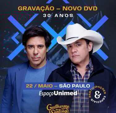 Do lançamento do primeiro álbum em 1994 até hoje, formam muitas histórias, shows, músicas, sucessos e nada melhor do que contar isso gravando um DVD em um show ao vivo em São Paulo, no Espaço Unimed, dia 22 de maio, que apresentará a trajetória brilhante de três décadas da dupla sertaneja Guilherme e Santiago, que será dirigido e produzido por Samuel Deolli.