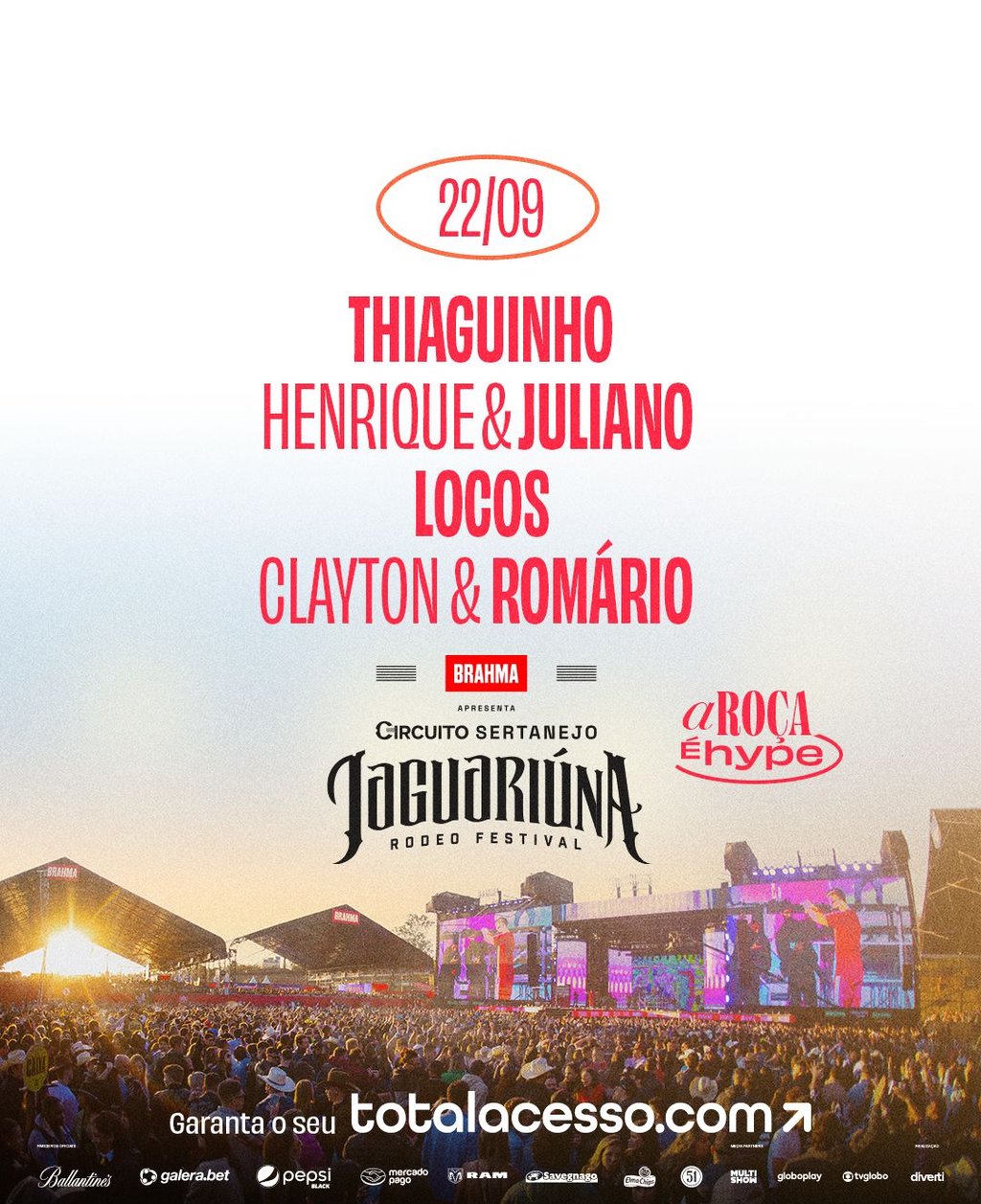 O line-up do dia ainda terá muito funk com os Locos e o sertanejo da dupla Clayton & Romário com o projeto Amanhecer, encerrando em grande estilo o primeiro dia do Jaguariúna Rodeo Festival!