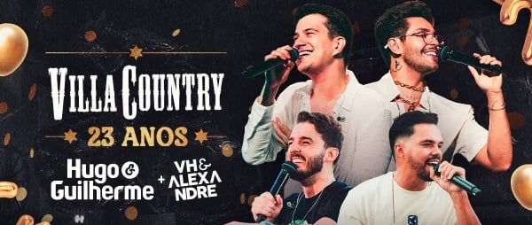 Chegou a hora da capital paulista conferir o novo show da dupla Hugo & Guilherme, um dos principais nomes da nova geração do sertanejo. Os artistas se apresentam no Villa Country nesta sexta-feira (16), ao lado da dupla VH & Alexandre, empresariada pelos cantores Goianos. Este será um dos shows em comemoração aos 23 anos da casa de shows e os últimos ingressos estão sendo vendidos no Ticket 360.