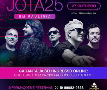 Viajando todo o Brasil com a tour "Jota25 – De Volta ao Novo" o Jota Quest chega em Paulínia, cidade do interior do Estado de São Paulo, para uma apresentação memorável. No dia 27 de outubro, a banda estará no palco do Premium Paulínia, resgatando memórias, matando a saudade dos clássicos, extravasando sentimentos e emoções dos fãs. A abertura dos portões será às 21h. A realização é da NDB Produções.