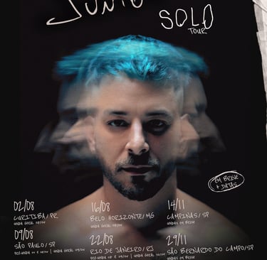 Junior acaba de anunciar novas datas da Solo Tour, que conta com algumas cidades inéditas. Com uma carreira de 35 anos que transcende gerações, o cantor, multi-instrumentista, dançarino e performer embarcou nessa audaciosa jornada artística em novembro de 2024. Agora, já na segunda parte da turnê e com novas datas a serem anunciadas, passará por Curitiba, São Paulo, Belo Horizonte, Rio de Janeiro, São Bernardo do Campo e Campinas.