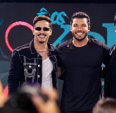 Destaques da nova geração sertaneja, Kaique e Felipe acumulam números expressivos nas plataformas digitais: são mais de 8 milhões de ouvintes mensais no Spotify e 305 milhões de streams de áudio e vídeo. A dupla se destacou nacionalmente com “Saveiro”, em parceria com Luan Pereira, canção que alcançou o primeiro lugar no Spotify Brasil e na Billboard Brasil em 2024, além de ter rendido certificado de Diamente Duplo à dupla.