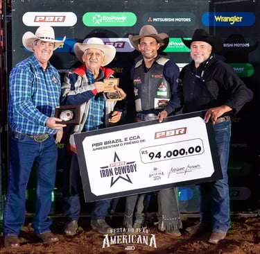 Na noite de hoje, 20 atletas entraram na arena em busca do tão sonhado título de Iron Cowboy. O modelo de competição exclusivo em toda temporada PBR é realizado pelo sistema de somatória de notas desde sexta (14). Desta forma, a todo momento o líder da competição alterava, proporcionando ainda mais emoção aos embates cheios de adrenalina. Dos 20, oito seguiram para o segundo round. Depois, apenas quatro atletas foram para o terceiro, até chegar à final onde a pontuação foi zerada. Valiam então os oito segundos e a maior nota. No duelo entre Alan de Souza e Carlos André de Oliveira, não deu para o competidor de Ipameri (GO). "Revanche", da Cia Tércio Miranda, levou a melhor. Com nota 86 junto ao "Semelhante" (FBM), Alan de Souza se tornou o novo Iron Cowboy - 2024.