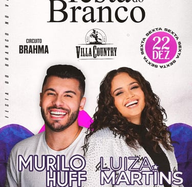 O Villa Country, a casa sertaneja mais tradicional da América Latina, anuncia a tão esperada Festa do Branco, que acontece anualmente no mês de dezembro. E para esta atração especial da casa, foram escolhidos Murilo Huff e Luiza Martins, que prometem uma noite cheia de romantismo e muita emoção, cantando os novos lançamentos, mas não deixando de fora grandes sucessos do repertório. A festa acontecerá no dia 22 de dezembro de 2023 (sexta-feira).