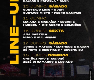 17 de junho (sábado) Jorge e Mateus/Matheus e Kauan/Zé Neto e Cristiano/Sevenn DJ