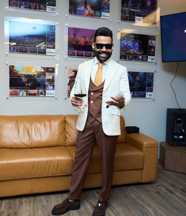O show ganhou ainda mais emoção com a presença especial de sua família — o filho Vitor e a esposa Adriele — além de amigos queridos, como a cantora e compositora Fátima Leão e a empresária Sylvia Design, que prestigiaram o artista nesta noite única.