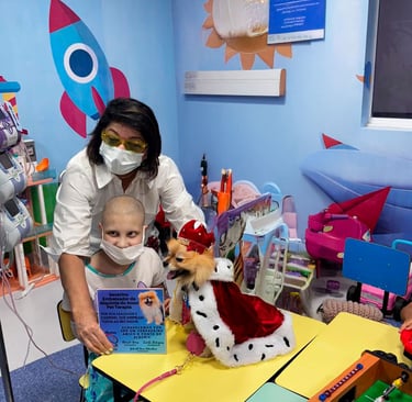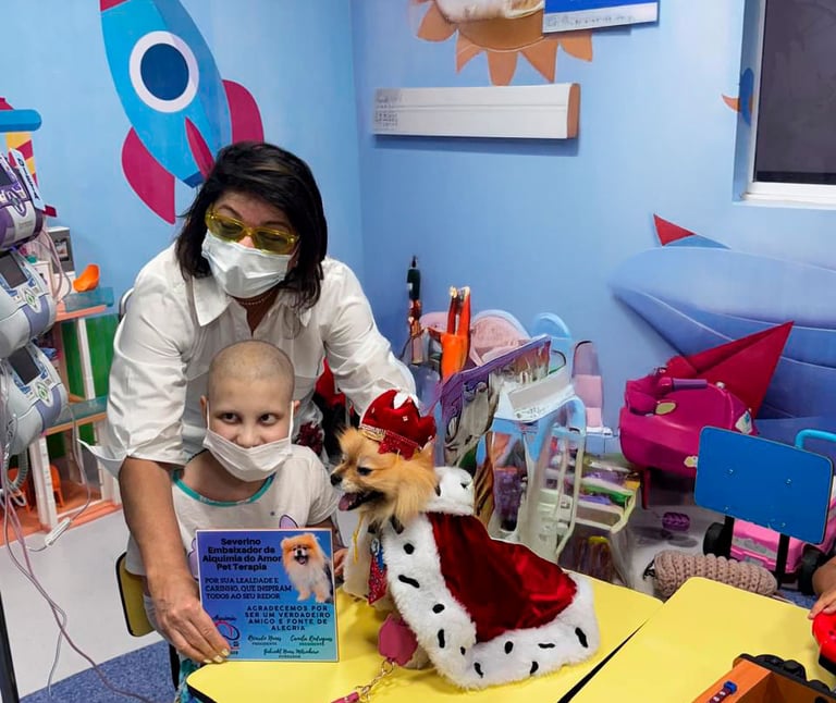 Durante a visita, Roberta e Severino levaram afeto e sorrisos aos pacientes da área de oncologia infantil, com destaque para encontro com a garotinha Luiza, carinhosamente chamada de Lulu. Das mãos de Luiza, o simpático cãozinho da raça Lulu da Pomerânia foi oficialmente nomeado o novo Embaixador da ONG Alquimia Pet, que realiza Serviços Assistidos por Animais (SAA), com o objetivo promover o bem-estar físico, emocional e social de pessoas de todas as idades, por meio da conexão afetiva com os animais.