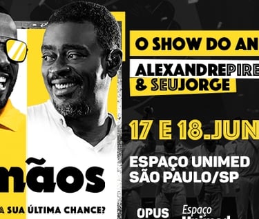 Compras de ingressos: Nas bilheterias do Espaço Unimed (de segunda a sábado das 10h às 19h - sem taxa de conveniência ) ou Online pelo site Ticket 360 https://www.ticket360.com.br/evento-composto/549/ingressos-para-irmaos-com-alexandre-pires-e-seu-jorge-e-se-fosse-a-sua-ultima-chance