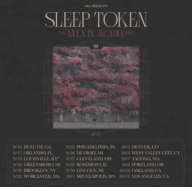 Neste novo capítulo, a banda embarca em sua primeira turnê solo esgotada em arenas pelos EUA — a “Even In Arcadia Tour” — com paradas em 17 cidades. Promovida pela AEG Presents, essa será a única turnê principal do Sleep Token em 2025. A banda também fará uma apresentação no festival Louder Than Life, na sexta-feira, 19 de setembro.