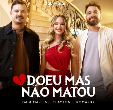 Gabi Martins prepara mais um lançamento musical. A cantora sertaneja convocou os amigos Clayton & Romário para cantarem e contracenarem na canção “Doeu mas não matou”. Nesta quinta-feira, 14, o single estará disponível nas plataformas de música às 21h. Já o videoclipe chega no dia seguinte, 15, às 11h no canal oficial do Youtube. Pré-save: https://ada.lnk.to/DoeuMasNaoMatou.