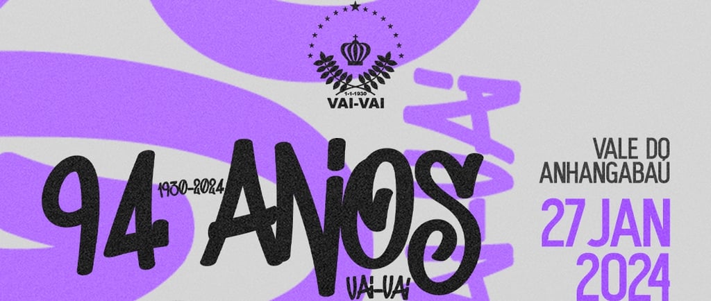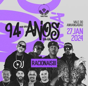 A escola de samba Vai-Vai celebra, em janeiro de 2024, 94 anos. E para comemorar em grande estilo, a grande campeã do carnaval paulista fará uma festa à altura! No Anhangabaú, palco de grandes acontecimentos da cidade, a escola reunirá Racionais MCs, Negra Li, Djonga, Dexter, Thaide, Doce Encontro, Rappin’ Hood, Dj Fabio Rogério, Rafrou Godzilla, Di Função, Tasha e Tracie, Athalyba Man e, claro, a bateria Pegada de Macaco.